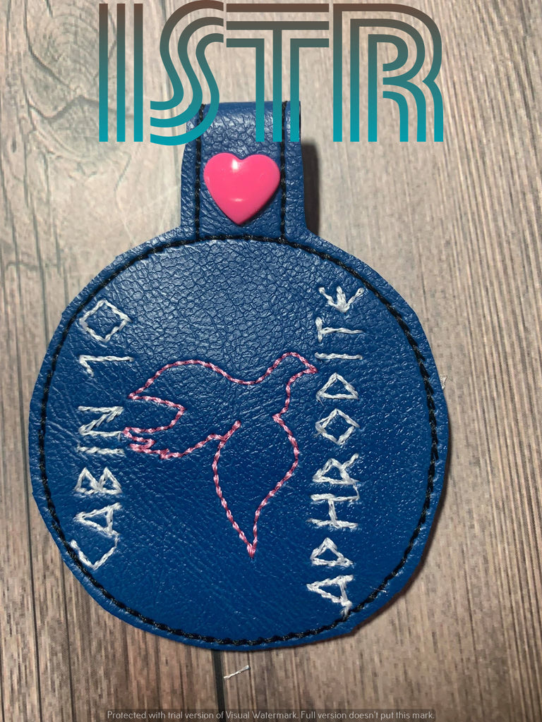 This is a digital download, not a finished product! Fits 4x4 hoop. File types included are: DST, EXP, HUS, JEF, PES, VIP, VP3 and XXX. If you need additional file types, please just message me and I can update the download. Items required: stabilizer, vinyl, tape/glue, Kam Snap/eyelet and keyring. Thank you for your interest!